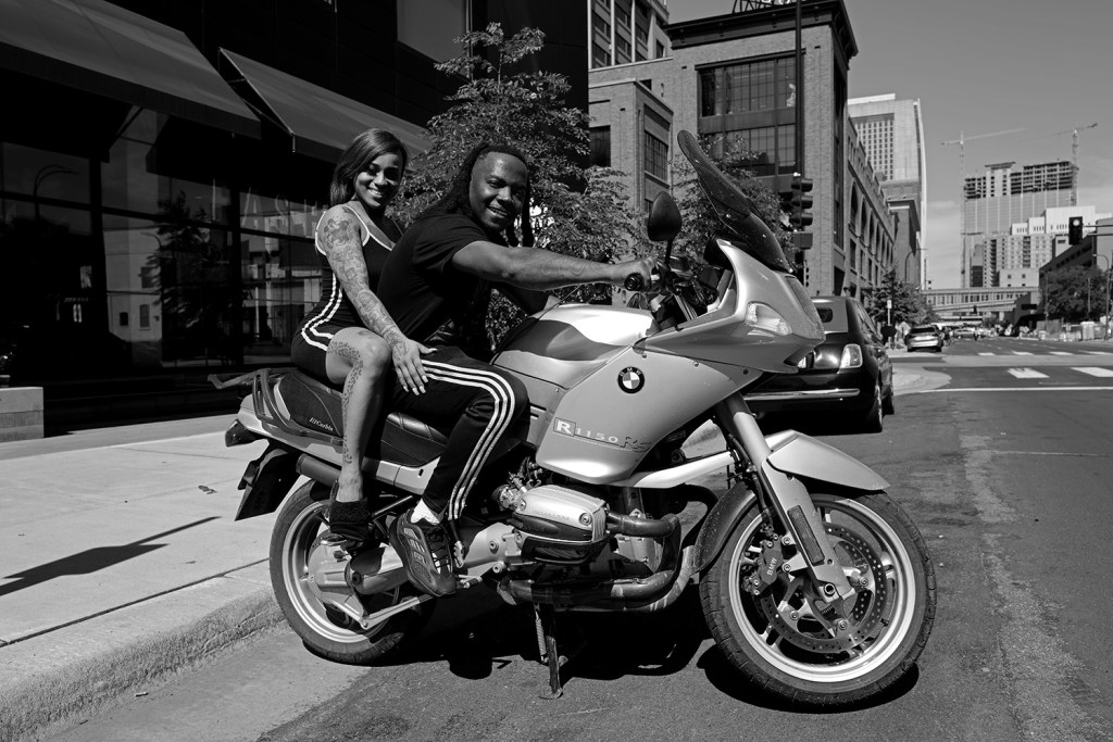 This morning in Minneapolis, before I departed, I photographed a couple whose names were Courvoisier and Chevy. They were super nice, and I sat them on the bike and took their photo. I think probably I already mentioned this, now that I think about it. Anyway, they were great, just making sure I noted it. Tomorrow will be another day entirely on the bike, just eating up the miles, interstates pretty much the whole way. Hopefully, arrive in Pittsburgh safely, find a place to stay. Then my next and final stop will be in Brooklyn, New York, where I live, believe it or not. [END OF AUDIO]