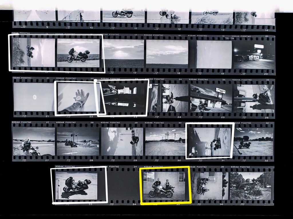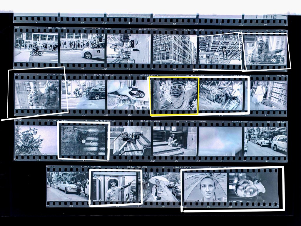 I shot about 200 rolls of film in 2022. From these pages of negatives I’ll pull together the images for the Mother & Daughter book. (These are poor quality “contact sheets” I shot with the iPhone and inverted for reference.)